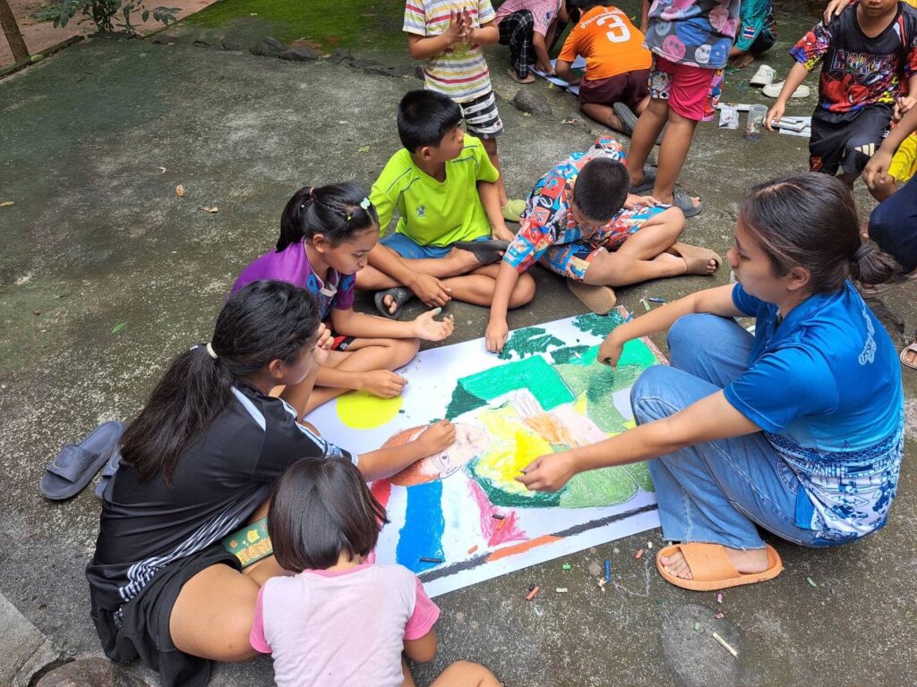 ชมรมศิลปะนางรองพิทฯ โรงเรียนนางรองพิทยาคม สพม.บุรีรัมย์ จัดกิจกรรมศิลป์สร้างสุข ในศูนย์พักพิงวัดป่าอัมพวันคุณานุสรณ์